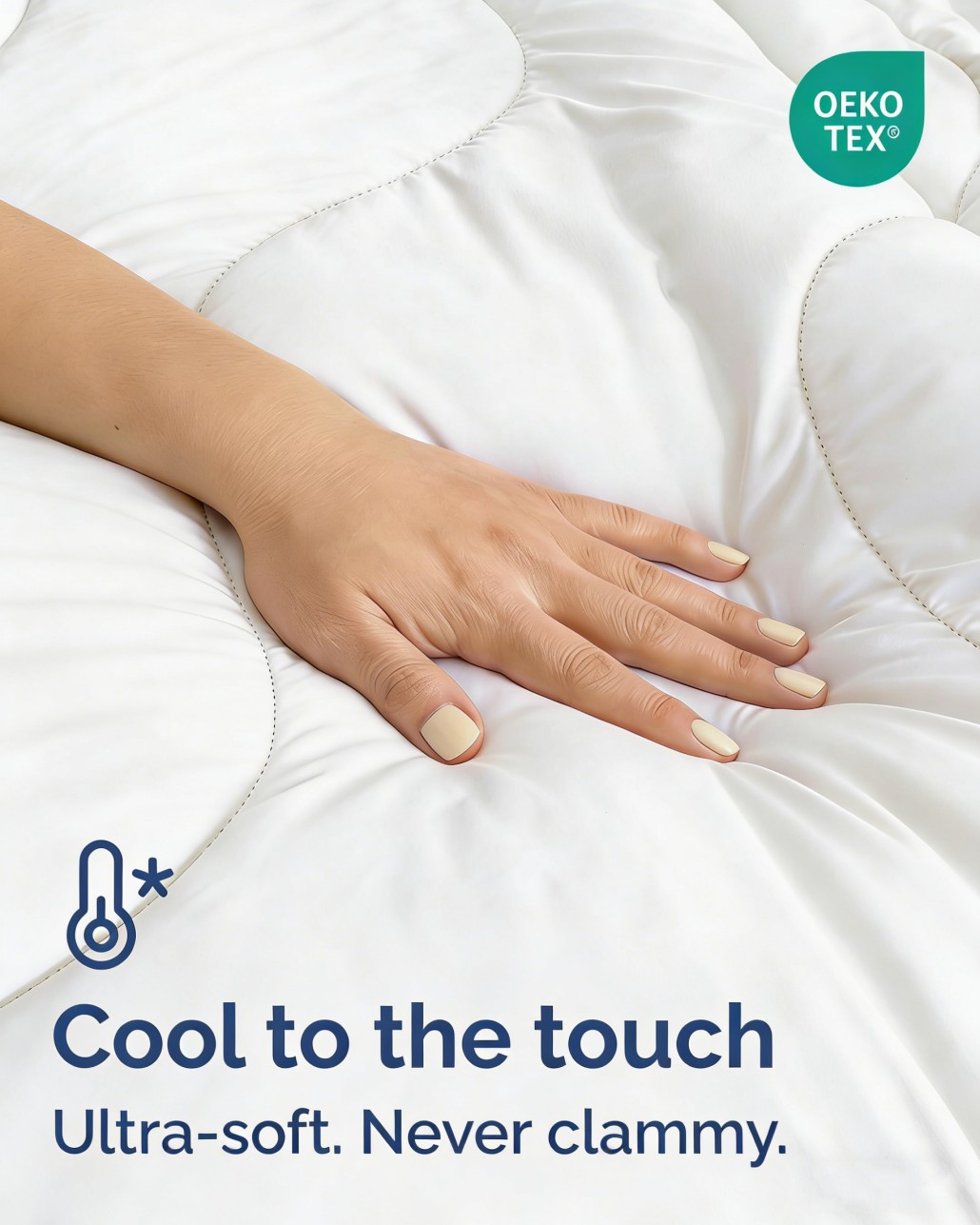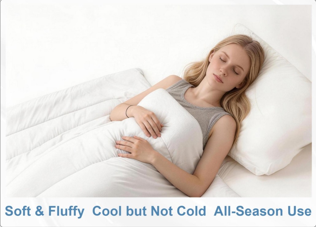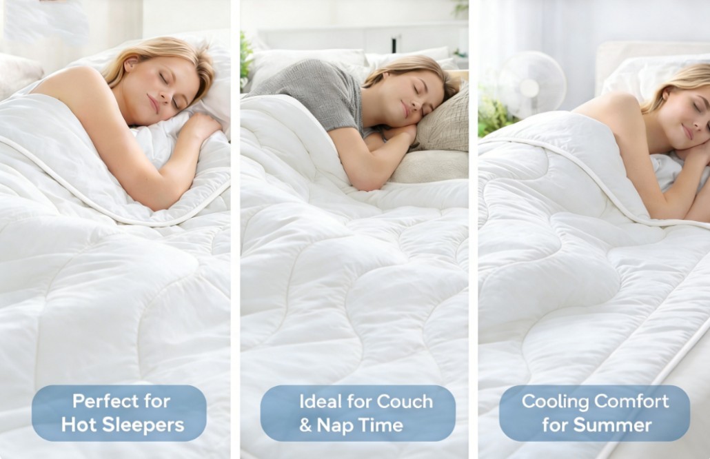 The 220 GSM fluffy construction provides a soft and airy feel without heavy pressure, making it perfect for summer and warm climates. Its sweat-wicking and skin-friendly materials help keep users dry and comfortable throughout the night.