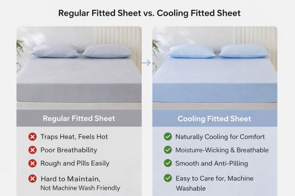 A: Our cooling fitted sheet offers better breathability, moisture-wicking, anti-pilling durability, and enhanced comfort.
